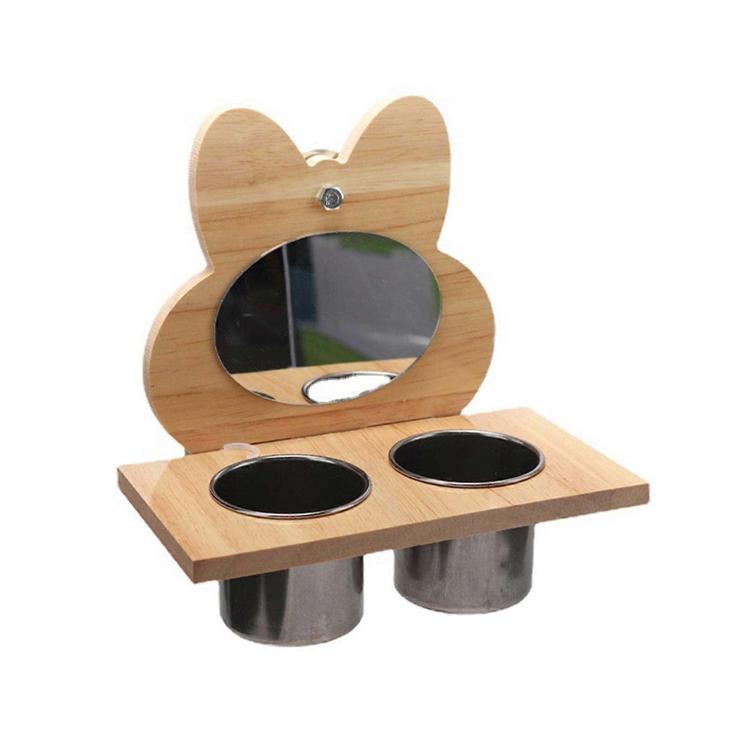 3 in 1 Design: The bird mirror toy consists of three parts, one part is 2 feeding cups, the second part is a wooden platform, and the third part is a mirror.