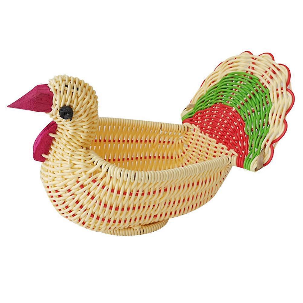 Our woven fruit basket is very strong, hard to break and fade, which can be used for lasting time. The basket is functional for daily use. Such practical and beautiful woven basket with its rustic yet cuteness outlook would make a great present for your friends and loved ones. Features -Color:As Shown -Material:PP -Size:40.00X22.00X20.00cm/15.72X8.65X7.86in - Proper capacity: the chicken-shaped basket has a proper capacity, providing ample space for storing various fruits. - Adorable cartoon chicken shape adds a festive atmosphere to your home on Thanksgiving. - Multi-functional: can be used to organize desktop clutter, fruits, snacks, and more, keeping your life organized. - Imitation rattan weaving: made with good weaving technique, ensuring durability and a natural style. - craftsmanship: meticulously with attention to detail, a long serving life. Package list: 1 x Woven Basket