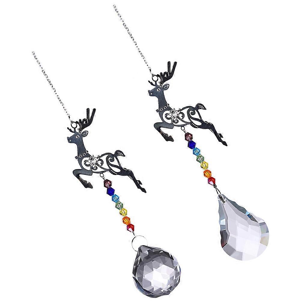Deer Sun Catcher Crystal Hanging Decor Chandelier Style Hanging Glass Ball Pendant Winter Holiday Multi Colored 50Mm Gourd 2Pcs