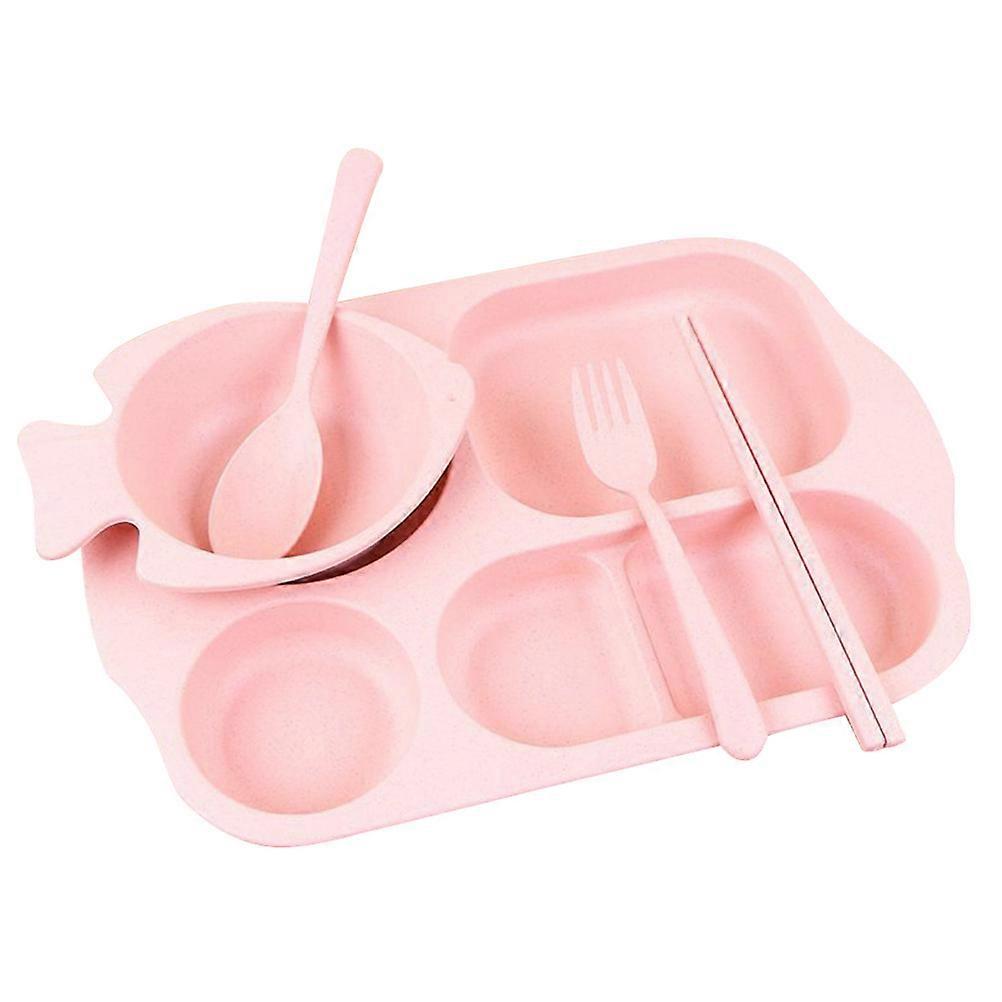 Wheatstraw Dishes Kids Dinner Plate Divided Compartments Rounded Edges for Safety Children Daily Use 5Pcs/Set