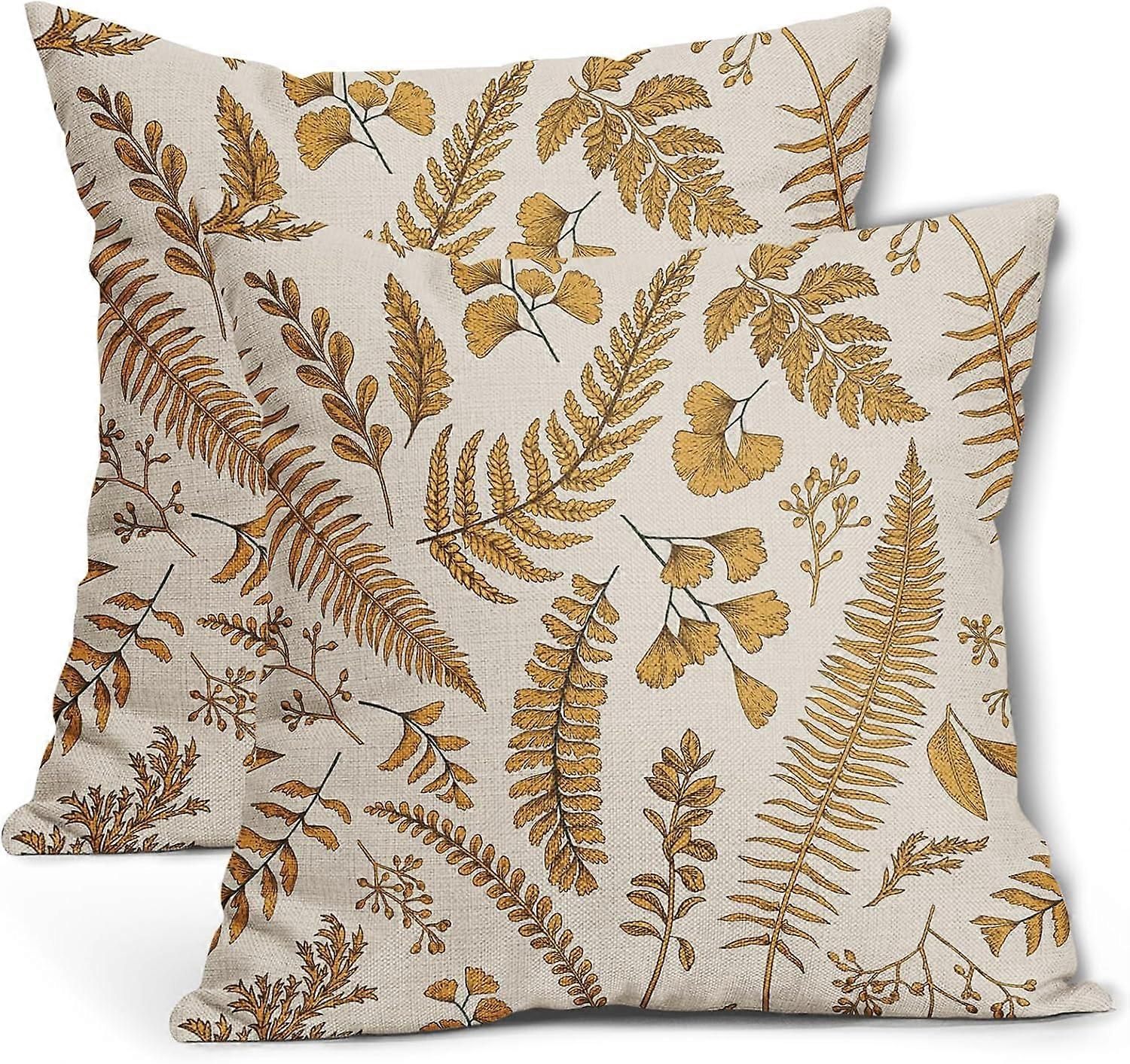 Yellow Leaf Plant Pillow Covers 16X16 Inch Set of 2 Tropical Fern Herbs Botanical Leaves Floral Decorative Pillow Cases Vintage Cushion Case Farmhouse
