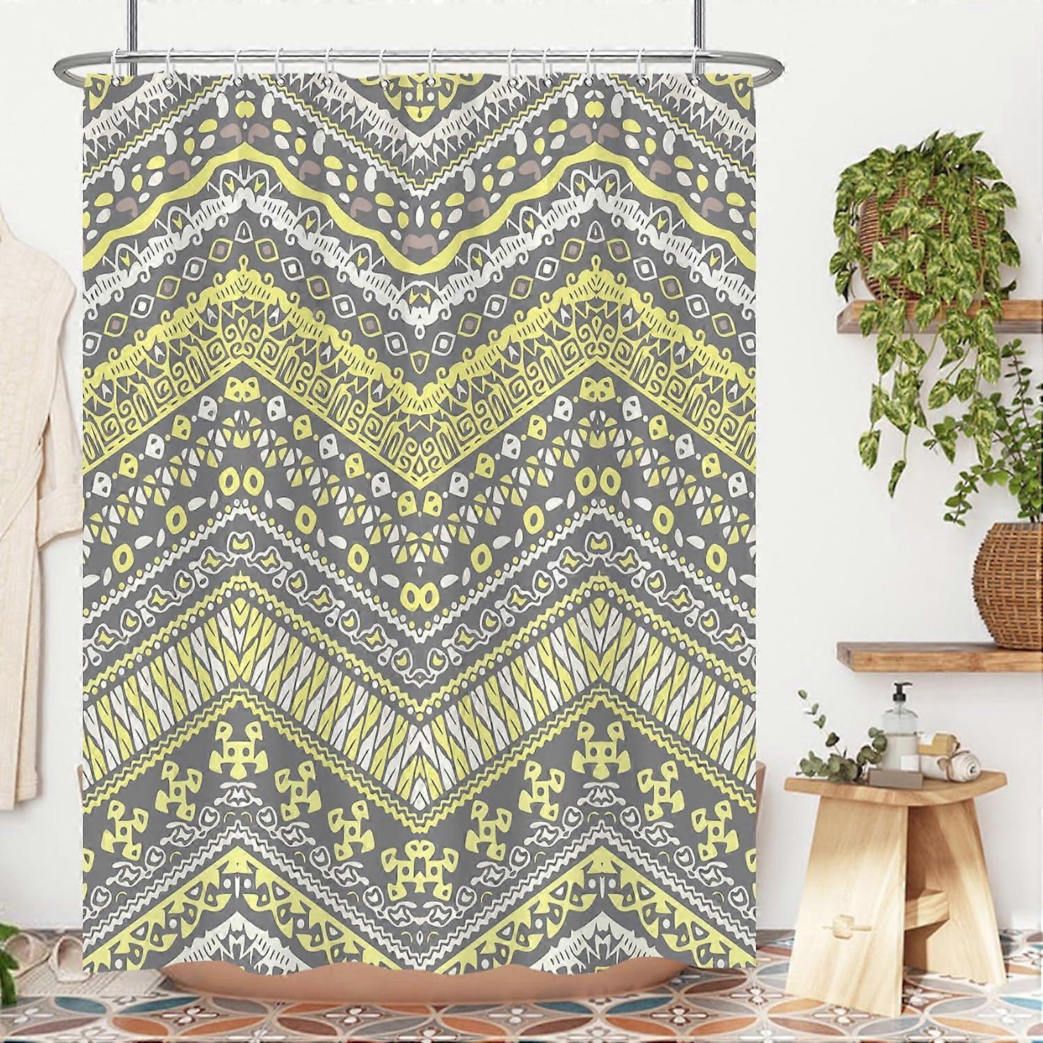 Yellow Bohemian Shower Curtain,Yellow Gray Boho Shower Curtain Set for Bathroom,Colorful Stripe Modern Fabric Bath Curtain with Hooks, 72x84inches