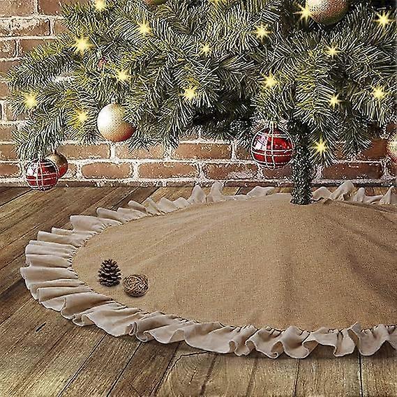 Burlap Christmas Fall Tree Skirt with Ruffles, 48" Linen Rustic Tree Ornament for Farmhouse Fall Christmas Dcor