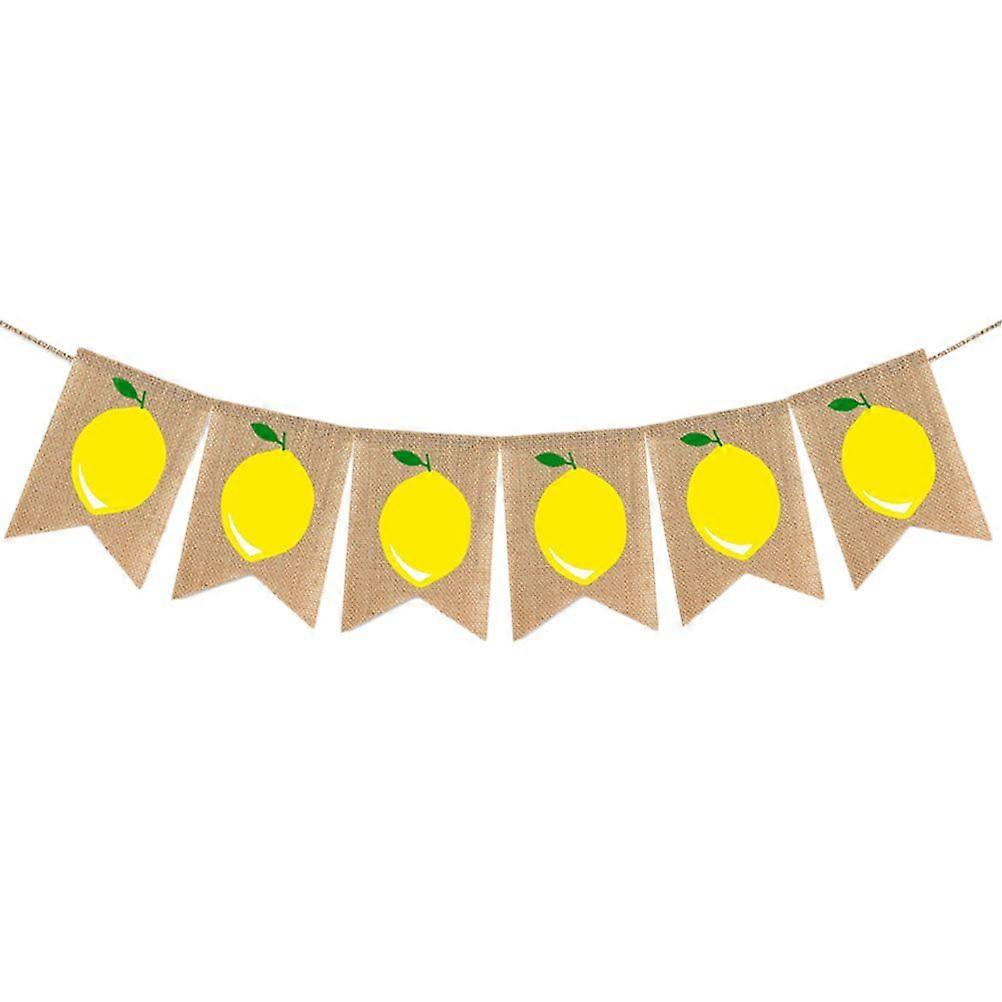 Burlap Banner Summer Lemon Themed Hanging Bunting Decoration Pull Flag Garland Party Decoration Supplies (B)