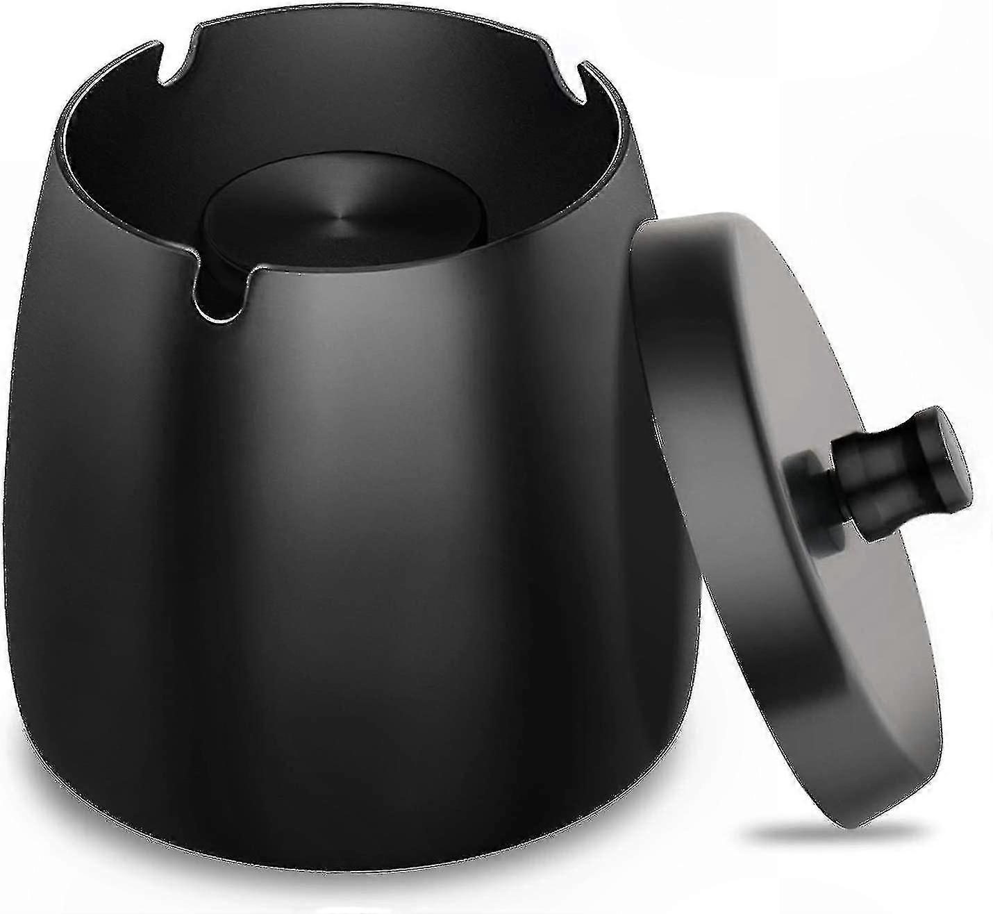 Black Stainless Steel Ashtray with Lid for Cigarette Ash and Butts