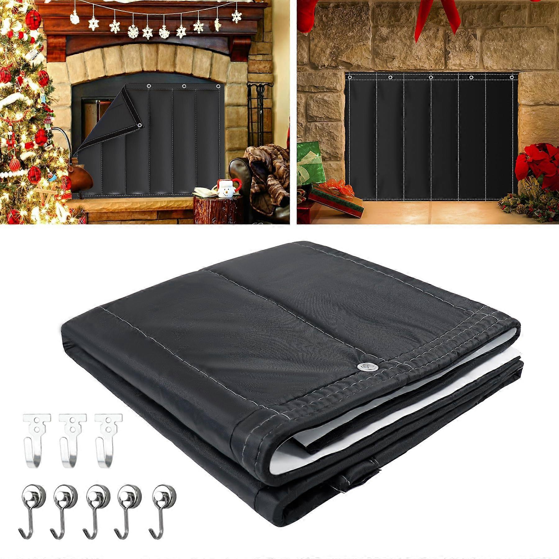Black Fireplace Blocker Blanket Draft Stopper 51'' W x 39'' H Energy-Saving Indoor Fireplace Cover for Winter