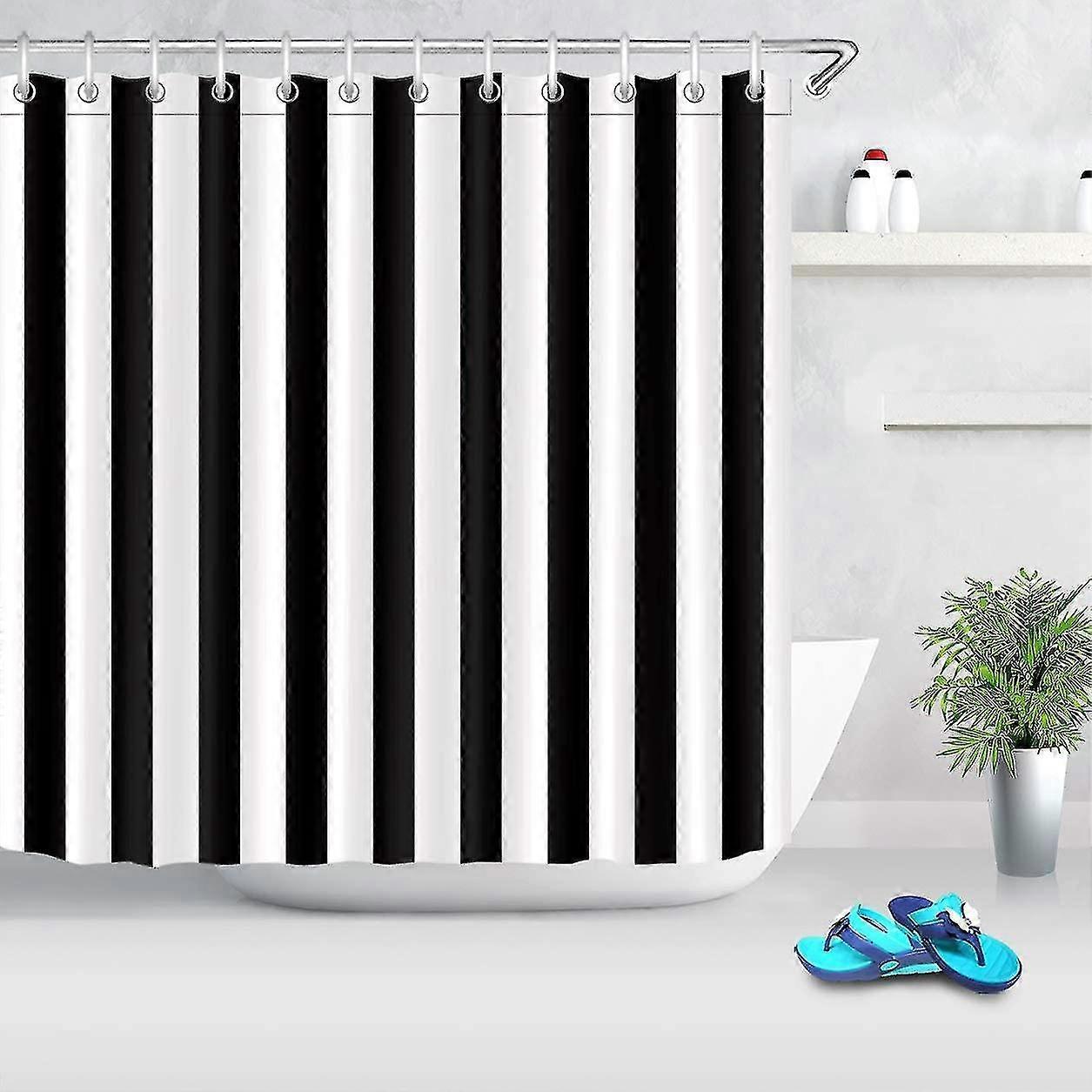 Black And White Shower Curtain, Striped Bathroom Curtain, 180 X 180cm Waterproof Polyester Fabric, Stylish Bathroom Decoration, Loop Hook Included