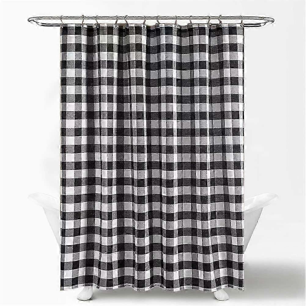 Black and White Plaid Water-Repellent Polyester Shower Curtain for Farmhouse Style Bathroom, 72 x 72 Inches