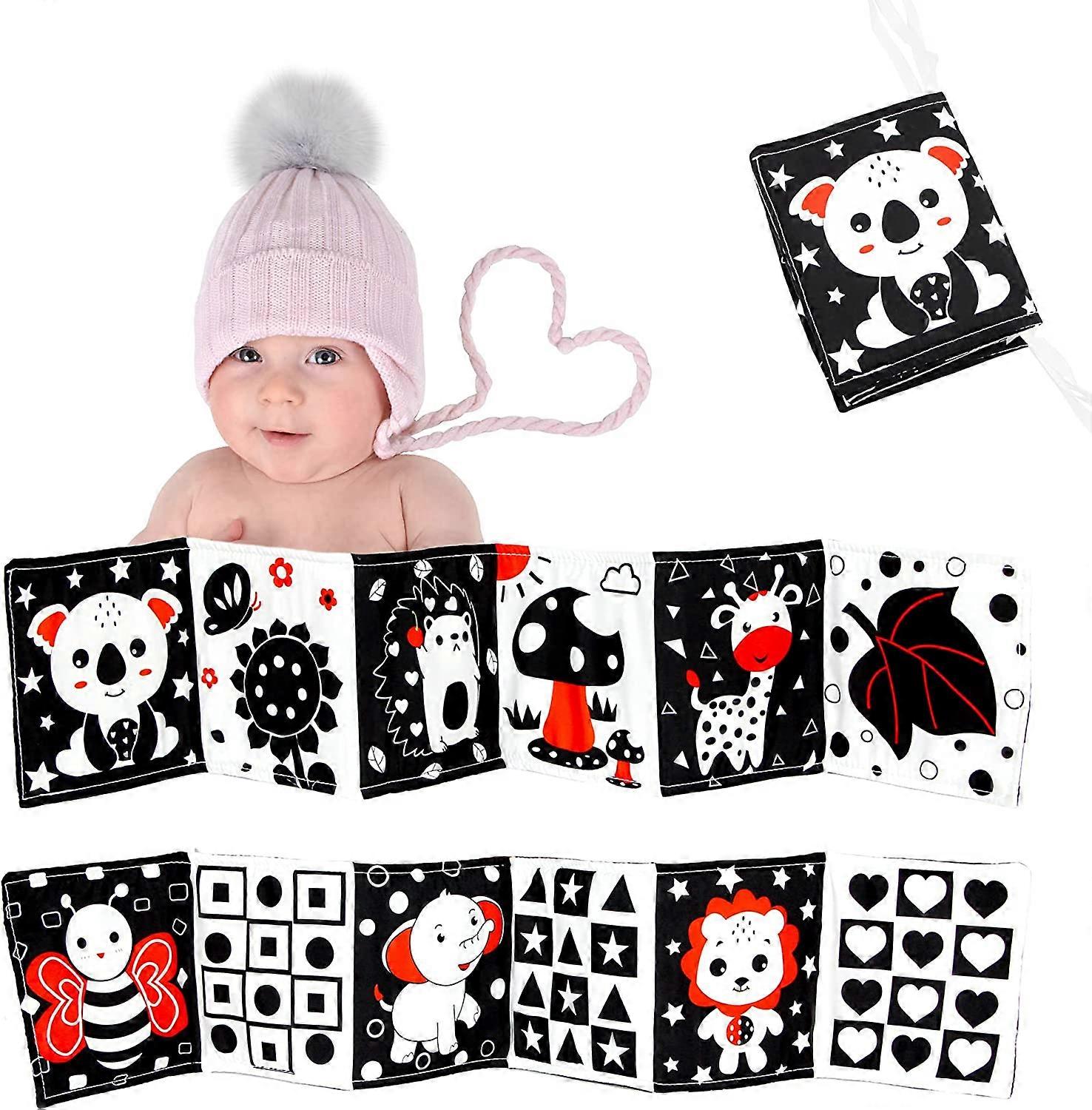 Black and White Baby Book, Infant Sensory Toys High Contrast Soft Cloth Book for Baby Tummy Time, Folding Educational Activity Cloth Book Toys for 0-1