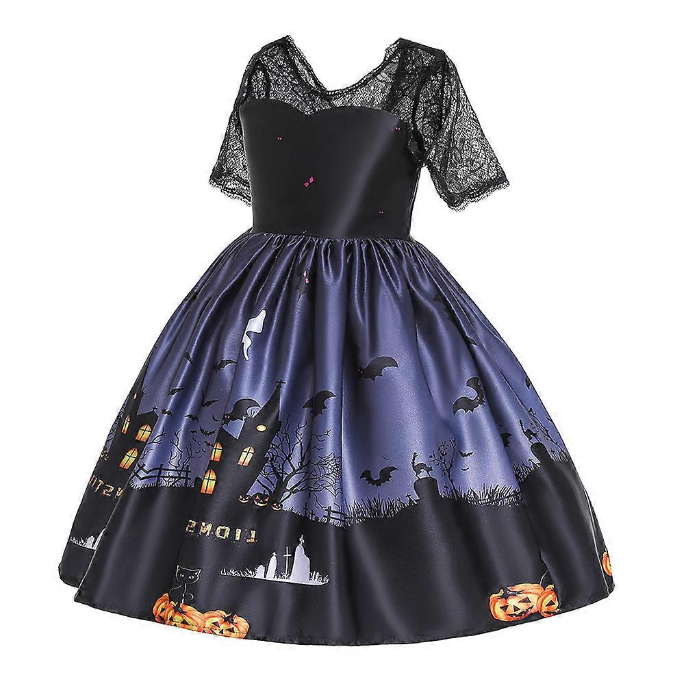 Black Halloween Girl Gauze Dress with Pumpkin Print for Girls Wearing 1Pcs