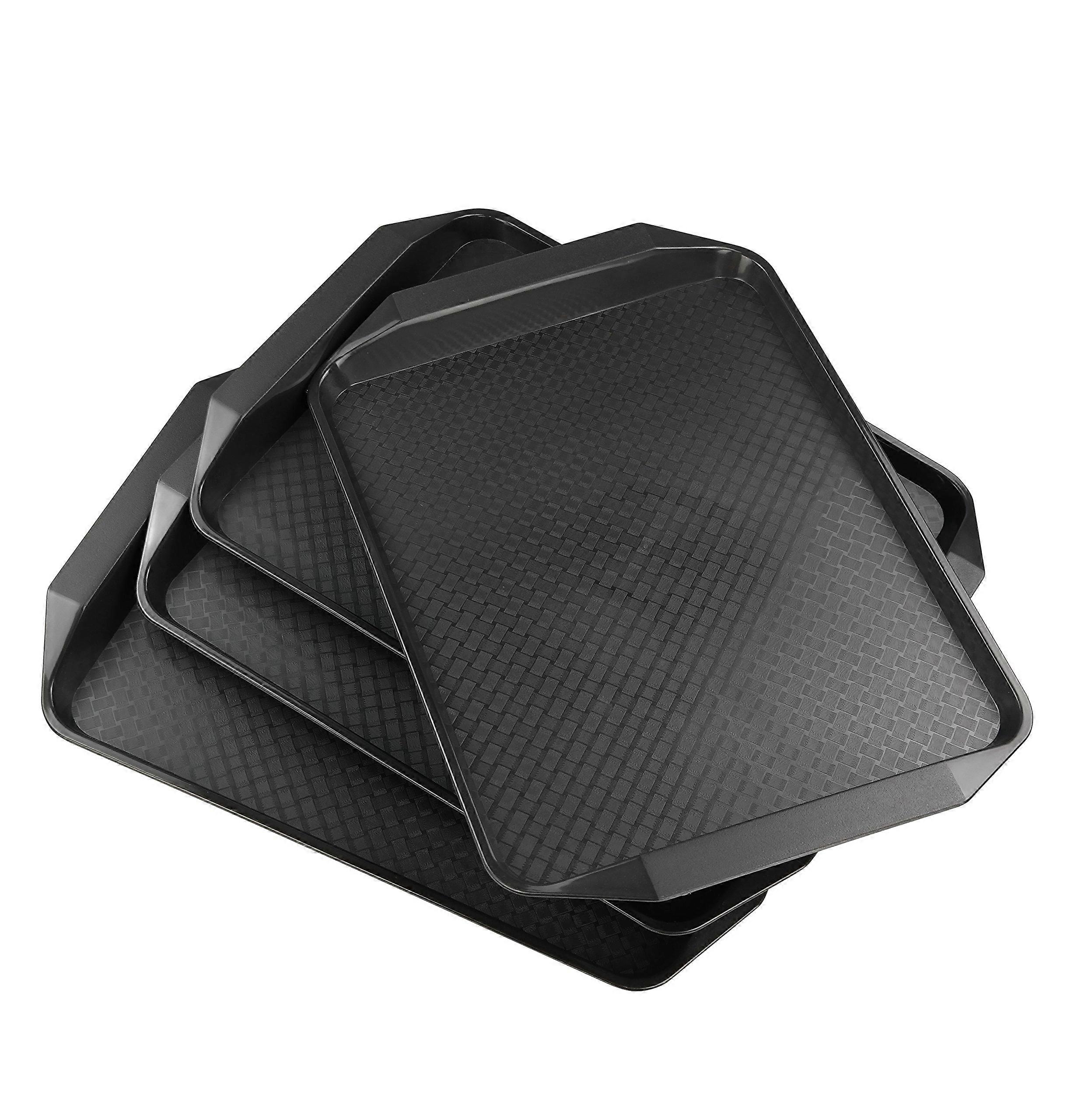 Black Plastic Fast Food Serving Trays, 16.8 x 12 Inch, Durable 4-Pack, Ideal for Restaurants and Catering
