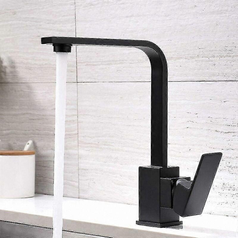 Single Hole Kitchen Sink Faucet with Seven-Function Adjustable Head for Hot and Cold Water in Black Square Design