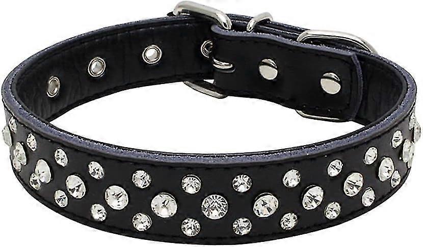 (Black) Rhinestone Dog Collar, Adjustable Sparkly Crystal Studded Leather Dog Collar For Small To Medium Dogs (s, Black)