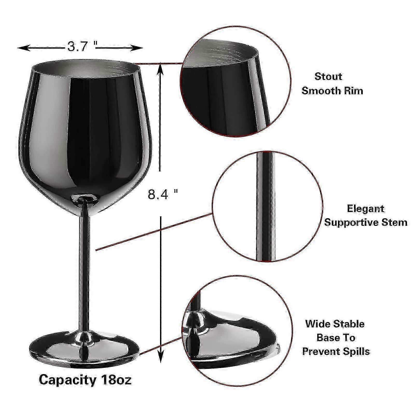 Set of 4 Black Wine Glasses, 550ml Unbreakable Stainless Steel Goblet