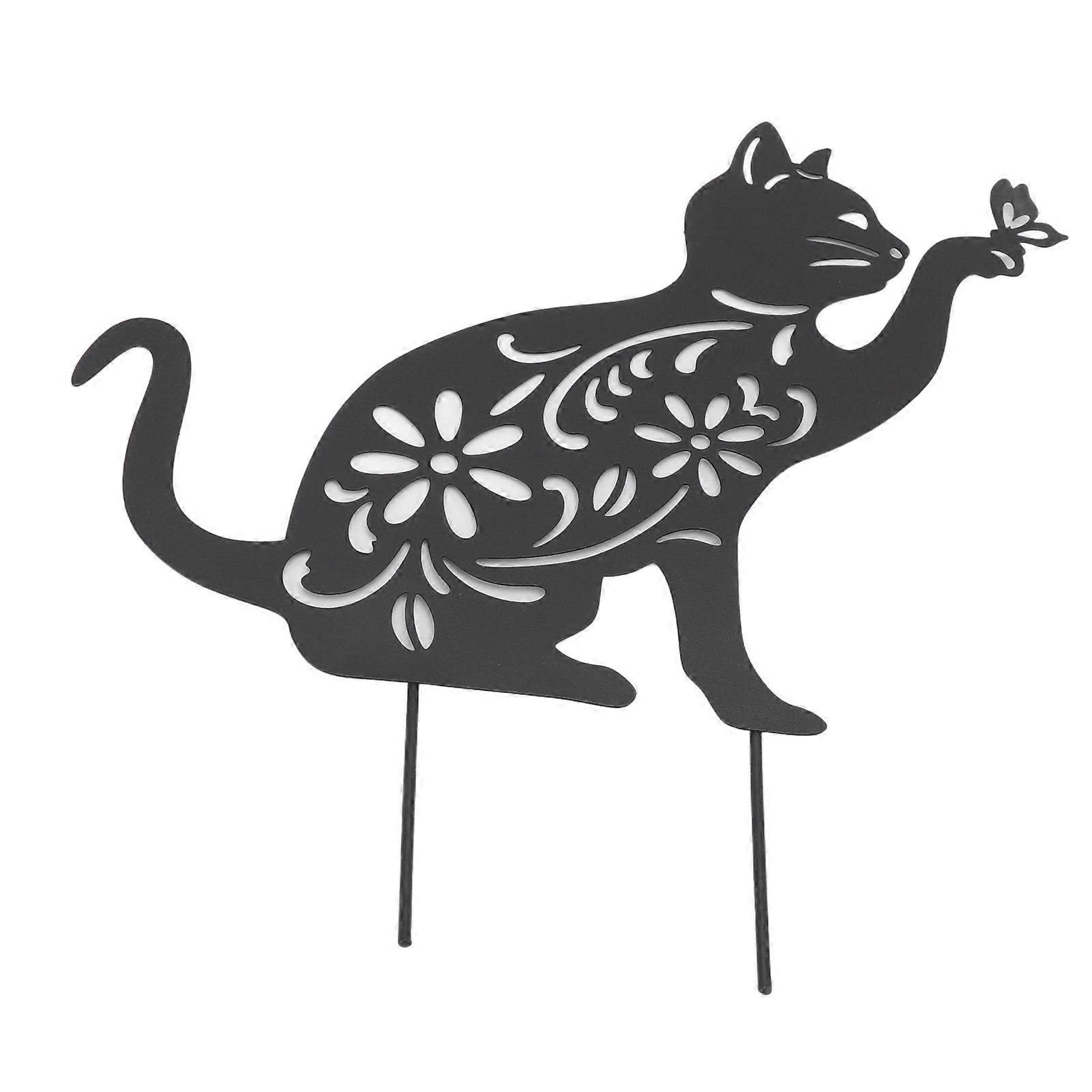 Black Cat Statuette Cute Black Cat Vivid Appearance Hollow Design Durable Metal Black Cat Decor for Home Garden Backyard