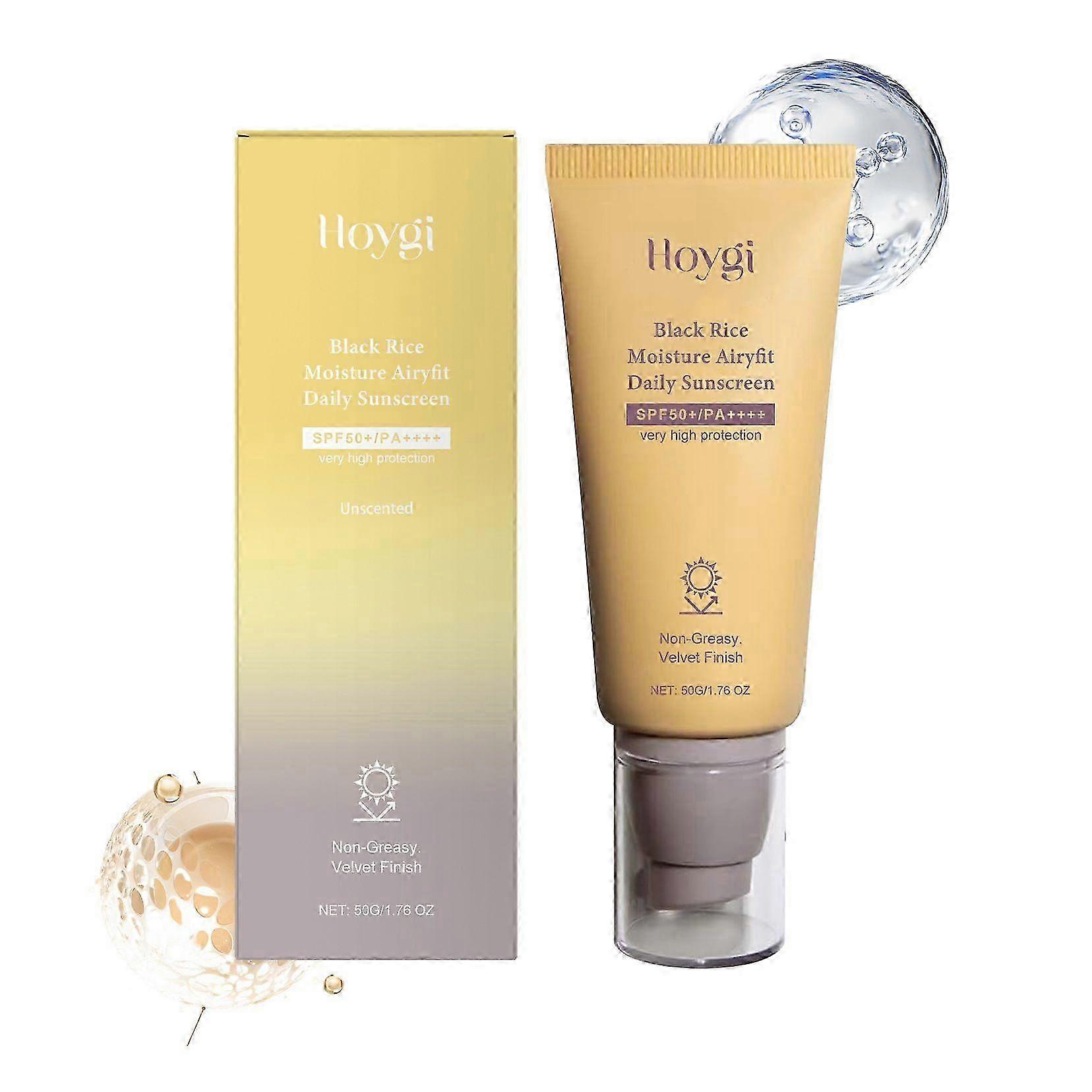 Black Rice Moisture Face Sunscreen Broad Spectrum SPF 50 Protection Non-Greasy Velvet Finish No White Cast For All Skin Types, Travel Size 50g