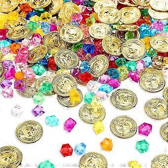 Pirate Treasure Toy - 200 Pieces Gem Jewelry Gold Coins for Party Decor