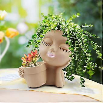 Creative Face Flowerpot Ceramic Planter Pots for Home Use 2Pcs Set