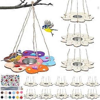 真新しい4パックDIYバードフィーダーキット木製バードフィーダー若者の絵画バードフィーダーキット顔料ペイントブラシ付きアートクラフト用品