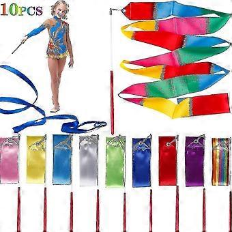 ダンスリボンストリーマー(10個入り)、13フィートユニセックスキッズ体操リボンワンド、新体操リボン