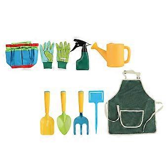 子供のためのミニガーデンツール - エプロンと帽子付き8PCSごっこ遊びセット