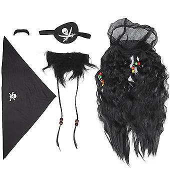 黒海賊の偽のひげ口ひげセットかつらのヘッドスカーフハロウィーンの偽の編みこみひげ