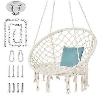 Hanging Chair, Indoor & Outdoor Swing Seat with Handwoven Cotton Fiber, Compatible with Mounting Hardware, Backrest, 265 lbs Capacity, Beige