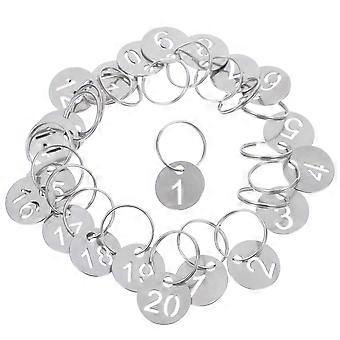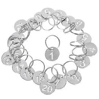 50pcsステンレス鋼ナンバータグ1-20、ラウンドメタルキータグ、番号付きキーリング