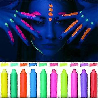 10個の暗いボディフェイスペイントで光る、ブラックライトUV蛍光クレヨンペイントスティックでネオングロー子供大人ハロウィーンブラックライトバースダ