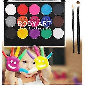 15色ボディペインティングフェイスペイントキット、2フェイスペイントブラシで洗えるプロフェッショナルパレット、プロフェッショナルボディフェイス