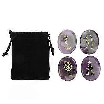 4pcsレイキシンボルストーンスムーサー表面刻まれたレイキストーンホームデコレーション瞑想オーナメントギフトアメジスト