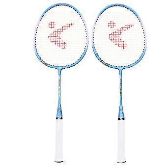 1ペアキッズアルミニウム合金バドミントンラケットアウトドアスポーツラケットセットトレーニングパットパタニティ子供漫画バドミントンラケット(青)
