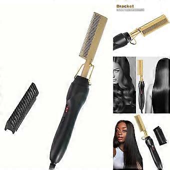 3 IN 1 Comb Electric Hair Straightener Comb Copper Metal Hot Hair Comb Home Beauty Salon DIY Fast Heating Curling Iron Copper