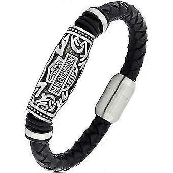 「100%本物のハーレーバイカーブレスレットソフトブラックレザーとステンレススチールの手作りメンズブレスレットL237」