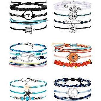 21ピースサーファーウェーブブレスレットオーシャンウェーブ調節可能な防水手作り友情ブレスレット夏のひまわりブレスレットアンクレットジュエリー女性ティーン