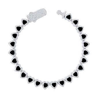925スターリングシルバーレディースホワイトブラックラブハートラウンドキュービックジルコニアハートリンクブレスレット7インチ7.5mmロングリンクブレース JewelryWeb