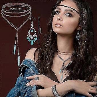 -女性のための8ピースターコイズジュエリー自由奔放に生きるボヘミアンジュエリー、ターコイズネックレスヴィンテージターコイズステートメントダングルイヤリング自由奔放に生きるレザーカフブレースXin