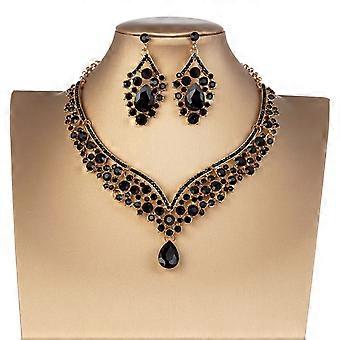 Sininen strassi kruunukaulakorusetti naisille korvakoruilla, 2 settiä