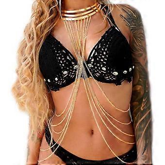 Boho-kultainen vartaloketjukaulakoru - siro olkaketjukoru naisille, täydellinen rannalle ja juhlaan