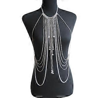 Hieno kukkainen pitsiketjukaulakoru - Kerrostettu tupsukoristeinen ristikkäinen valjaat seksikkäille vartaloasusteille naisille ja tytöille