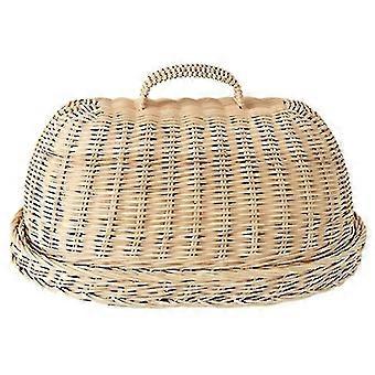 カバー付き籐トレイ、手織りの籐バスケット、パン、フルーツ食品、朝食、ディスプレイボックス、互換性のある食品、F