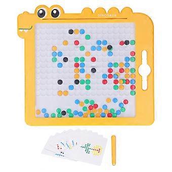 磁気ドット製図板恐竜の形をした落書きボード、磁気ペンとビーズ付き教育玩具イエロー