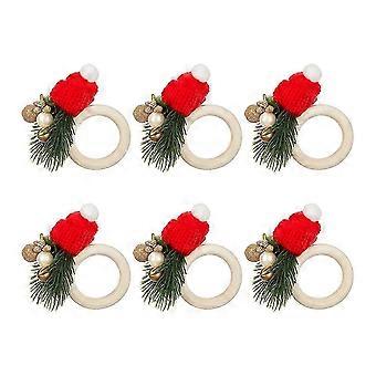 6pcsクリエイティブクリスマスデザインナプキンバックルクリスマステーマパターンテーブル用品