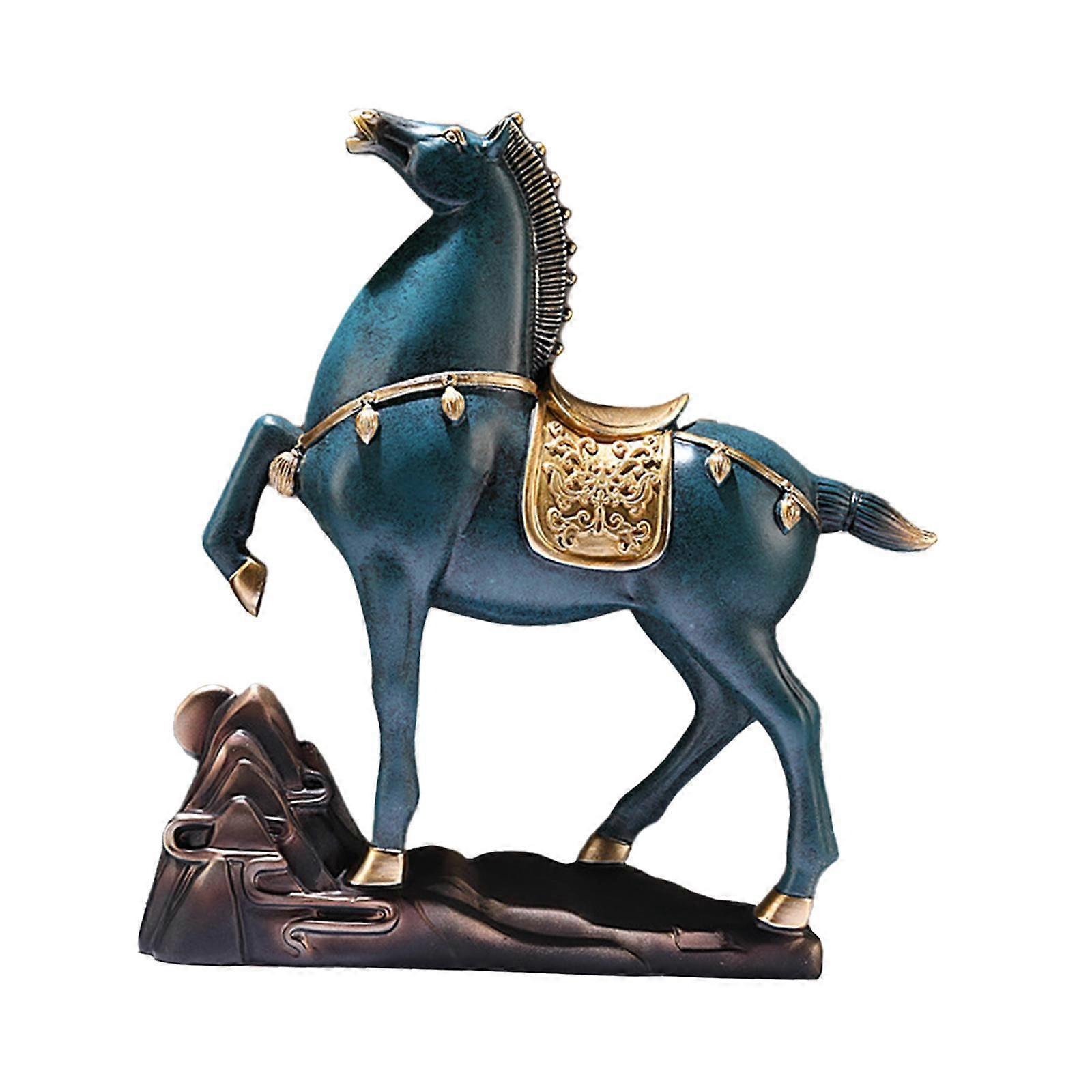 Horse Figurine Sculpture Tabletop Ornament 10x3x10.4inch for Cafe, Bar Decor Blue