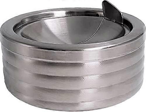 Grooved Silver Smokeless Classic Metal Ashtray with a Lid for Cigarettes - Windproof Ashtreys for Patio Outdoor Indoor