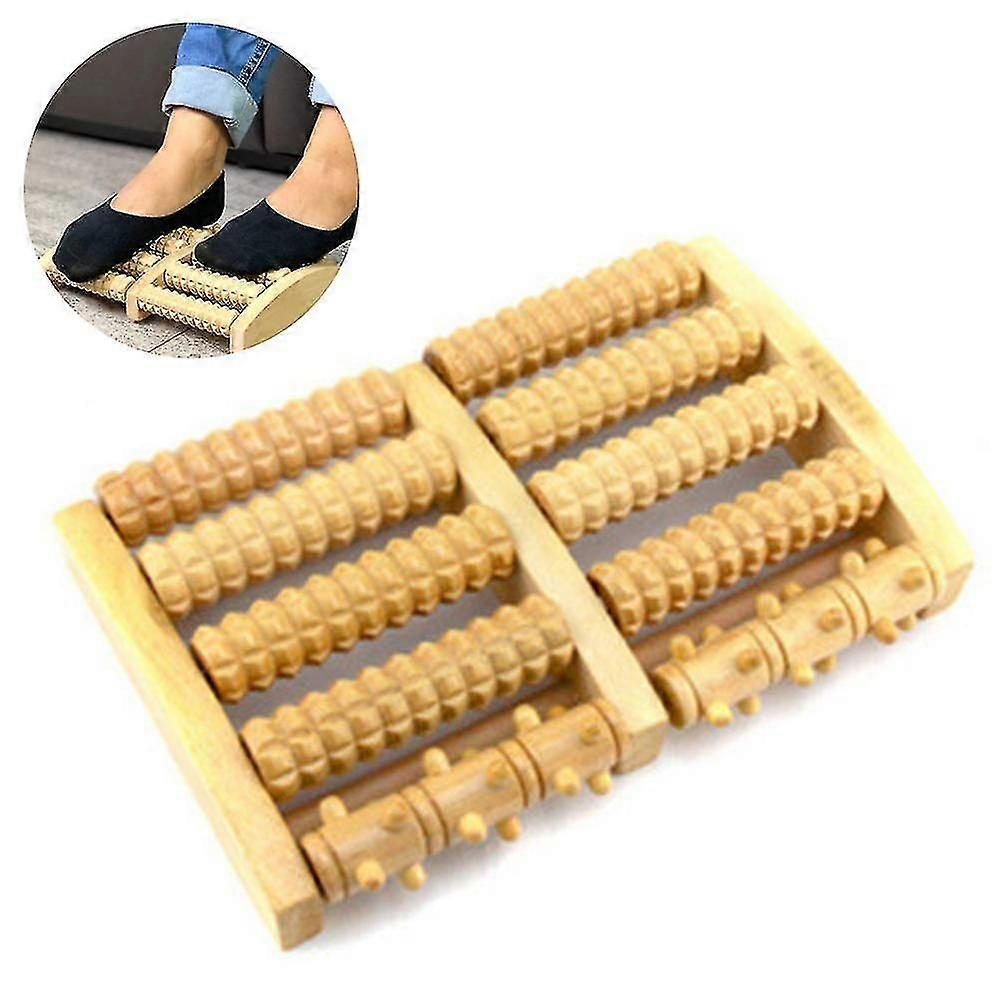 Dual Foot Massager - Wooden Massage Roller Compatible With Plantar Fasciitis, Stress, Heel And Arch Pain - Shiatsu Deep Tissue Therapy With Reflexolog
