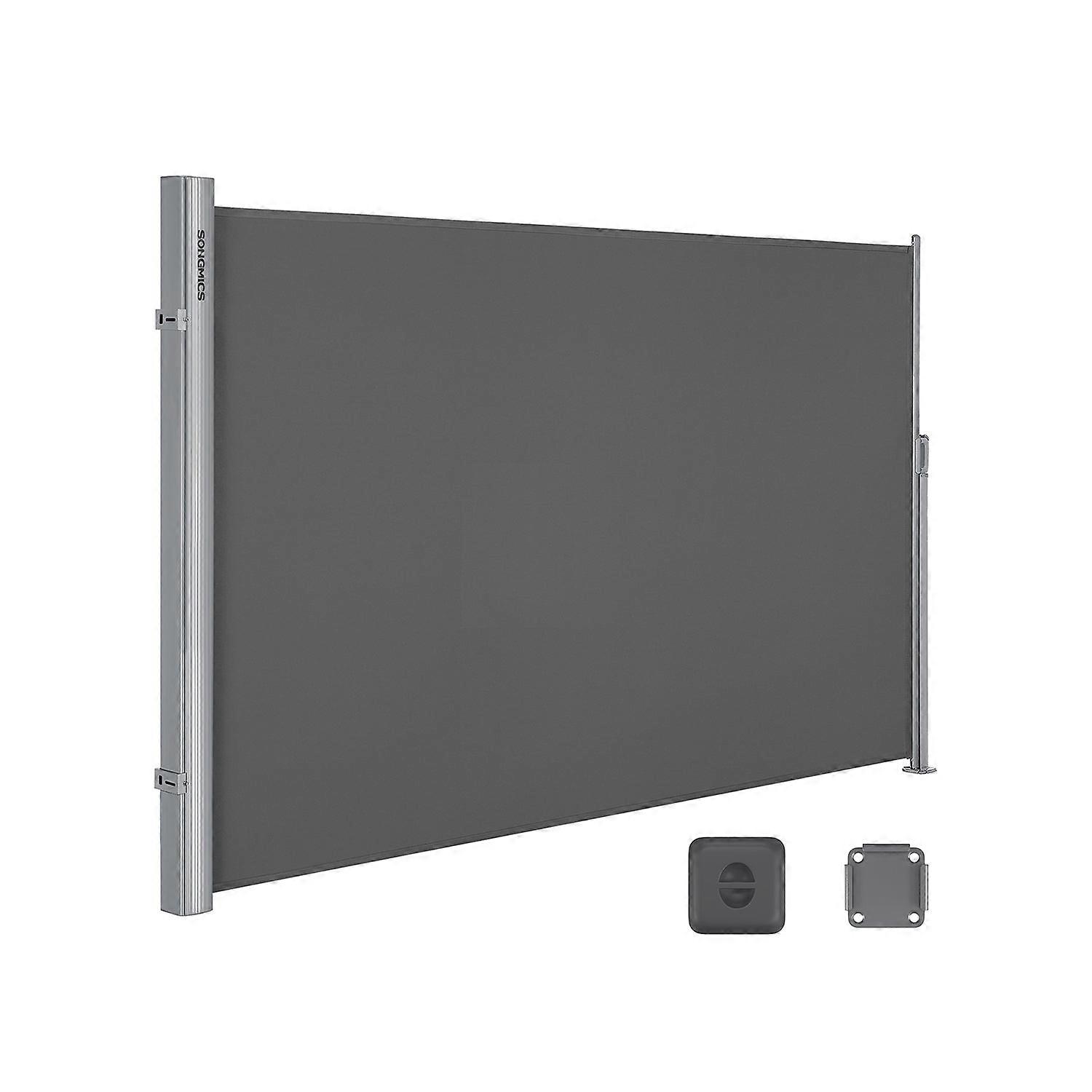 Homestorecity Zijzonwering voor balkon en terras, TÜV SÜD GS gecertificeerd, privacyscherm, zonwering - Elegante privacyscherm voor terrassen en balkons. Geniet van uw ontbijt of brunch zonder nieuwsgierige blikken van de buren. Profiteer van de verkoelende schaduw in de zomer en de beschutting tegen de wind, en geniet van de zomerse temperaturen terwijl u ontspant op uw terras of balkon. Flexibele zijzonwering voor buiten en binnen. U kunt de zijzonwering ook binnen gebruiken, bijvoorbeeld in een praktijkruimte of studio. U heeft alleen een stabiele muur nodig waaraan de zijzonwering kan worden bevestigd. Dankzij de grondbeugel kunt u de zonneschermpaal eenvoudig verwijderen, waardoor er alleen een kleine, lage beugel op de grond overblijft die onopvallend is. Eenvoudig te monteren en te gebruiken. De installatie is snel en eenvoudig dankzij de meegeleverde montage-instructies. Eenmaal volledig gemonteerd, is de zijzonwering eenvoudig te gebruiken en net zo snel op te rollen wanneer deze niet meer nodig is. Rol de zonwering op bij harde wind, hevige regen of sneeuwval om lang van uw privacyscherm te genieten. Productdetails: - Kleur: Antraciet - Materiaal: Aluminiumlegering, polyester (280 g/m²), PU-coating - Afmetingen: 160 x 300 cm (H x L) - Gewicht: 7,5 kg - Leveringsomvang: - 1 x zijluifel - 1 x accessoirepakket - 1 x gebruiksaanwijzing