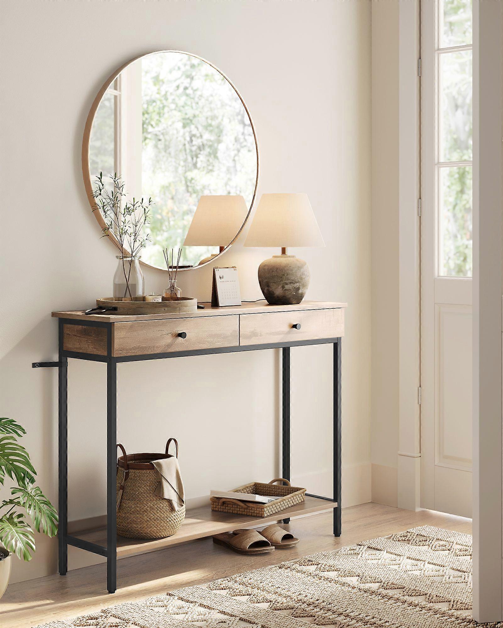 Consoletafel Met 2 Lades, Kameelbruin En Inktzwart 30 X 100 X 80 Cm