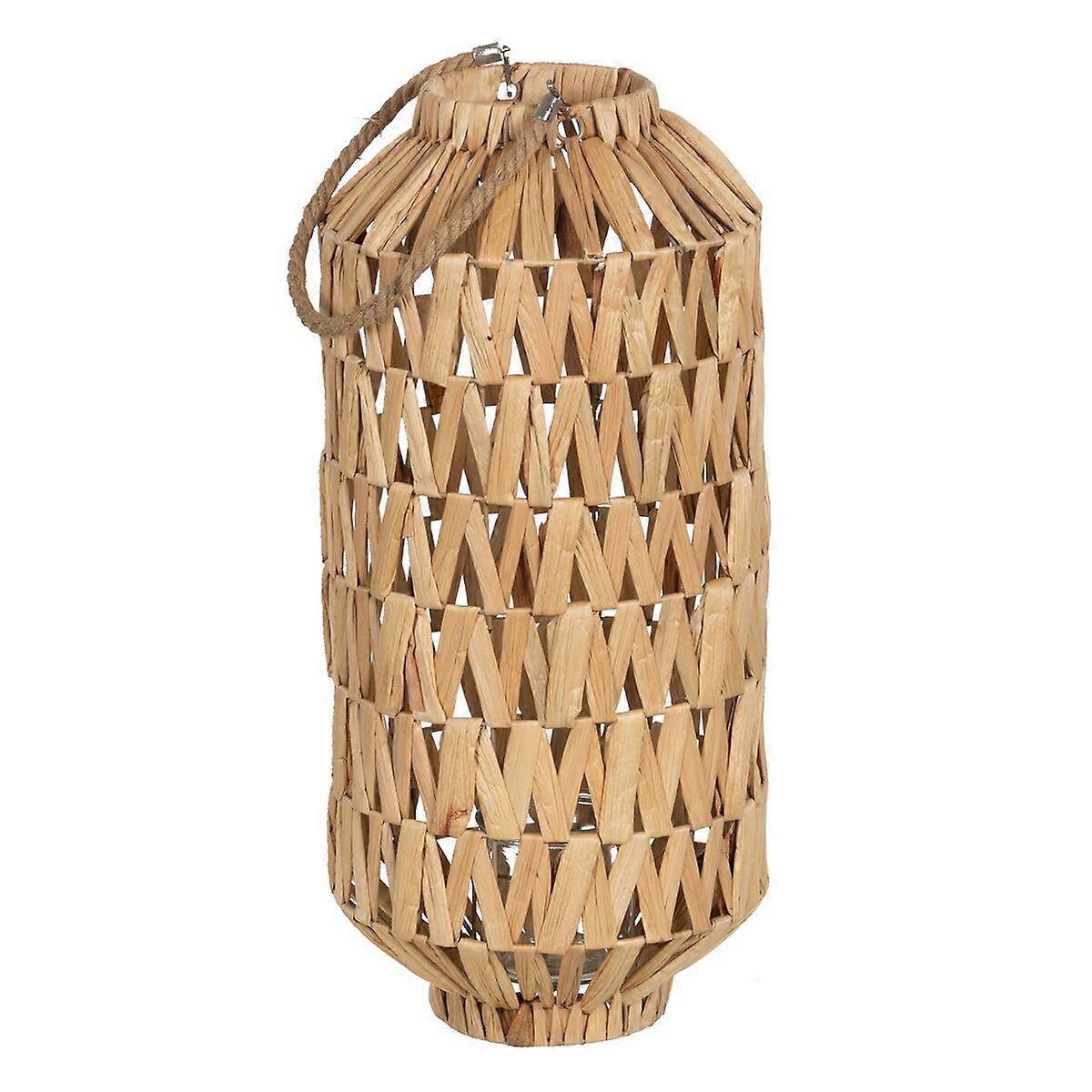 Laterne Kerzenschale Laterne Beige Metall Kristall Wasserhyazinthe 27 x 27 x 59 cm