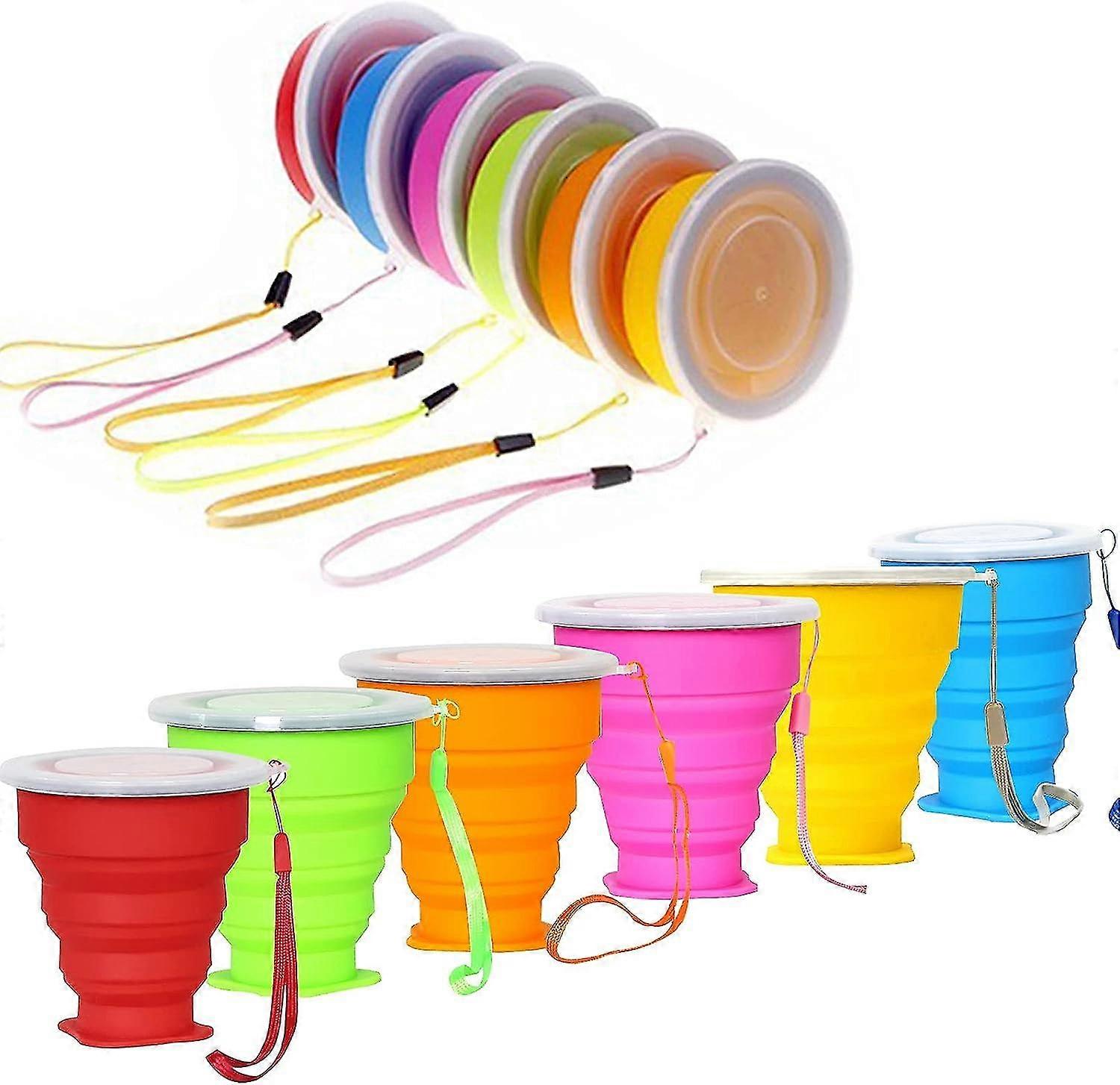 -silicone Collapsible Travel Cup, 6 Pack Collapsible Silicone Cup With Lid, Expandable Drinking Cup Set, Reusable Mug For Camping, Hiking, Travel